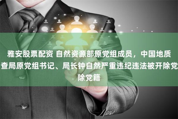 雅安股票配资 自然资源部原党组成员,中国地质调查局原党组书记、局长钟自然严重违纪违法被开除党籍